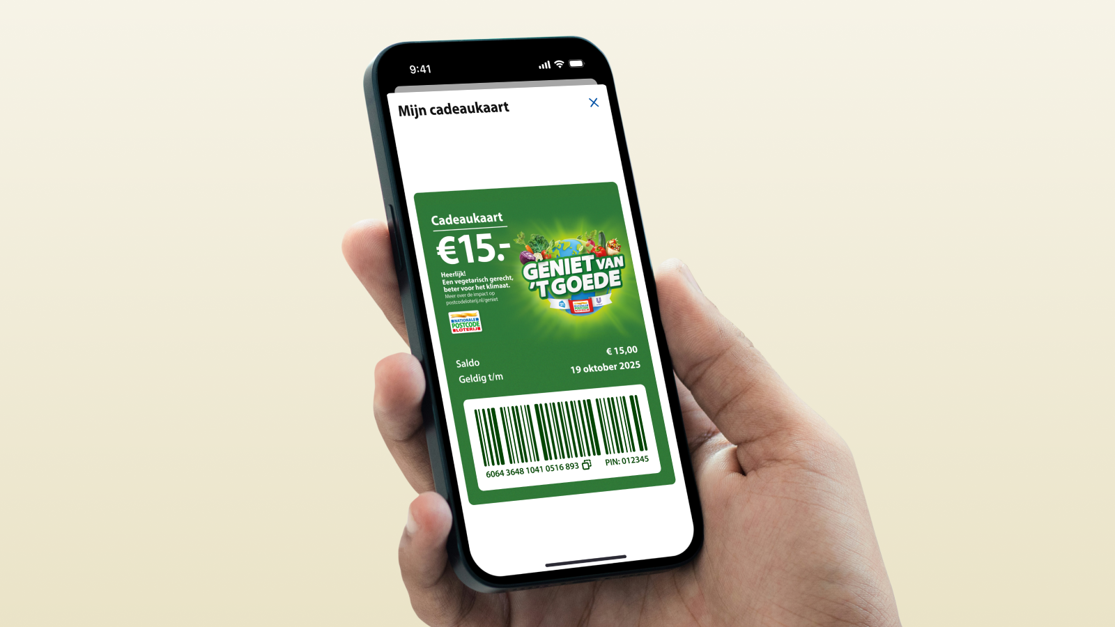 Haal je het meeste uit je Postcode Loterij ‘Geniet van ’t Goede’-kaart - Gierige Gerda: - Amstelveen - Inwoners die meespelen met de Postcode Loterij ontvangen in deze periode een cadeaukaart ter waarde van 12,50 waar mee zij vegetarische producten kunnen kopen bij de Albert Heijn. Voedselbank Amstelveen roept Amstelveners die de kaart niet gebruiken alvast op om deze geactiveerd te doneren.